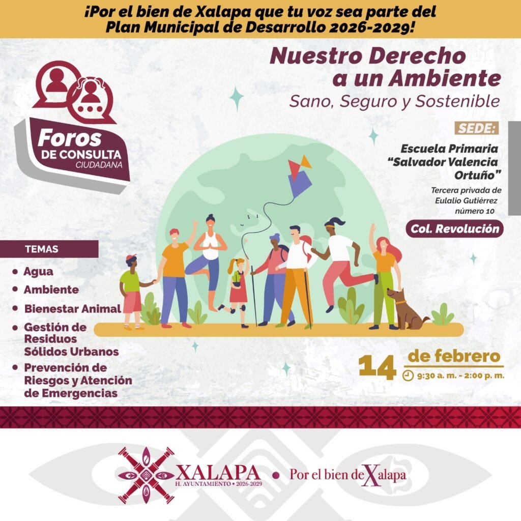 Xalapa, Ver., 3 de febrero de 2026.- Con el propósito de contar con un Plan Municipal de Desarrollo (PMD) que atienda las principales necesidades de la población y considere las propuestas de la sociedad, el próximo sábado 7 de febrero inician los foros de consulta para la elaboración del PMD 2026-2029.